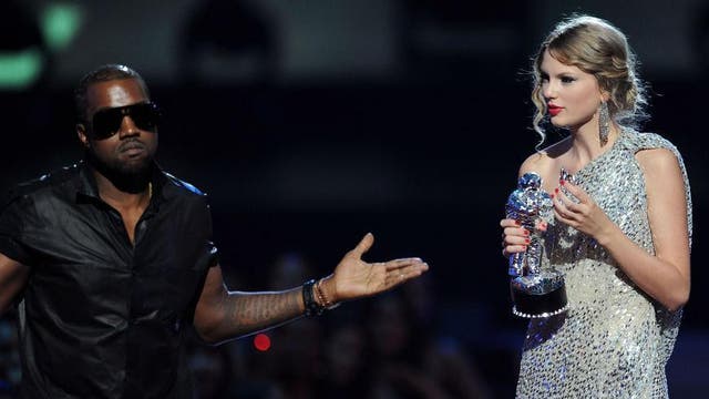 By Charlotte Spratt Updated. Kanye West jumps onstage after Taylor Swift won the Best Female Video award during the 2009 MTV Video Music Awards. Taylor Swift reacts to Kanye Wests interruption of Beck at the 2015 Grammys.